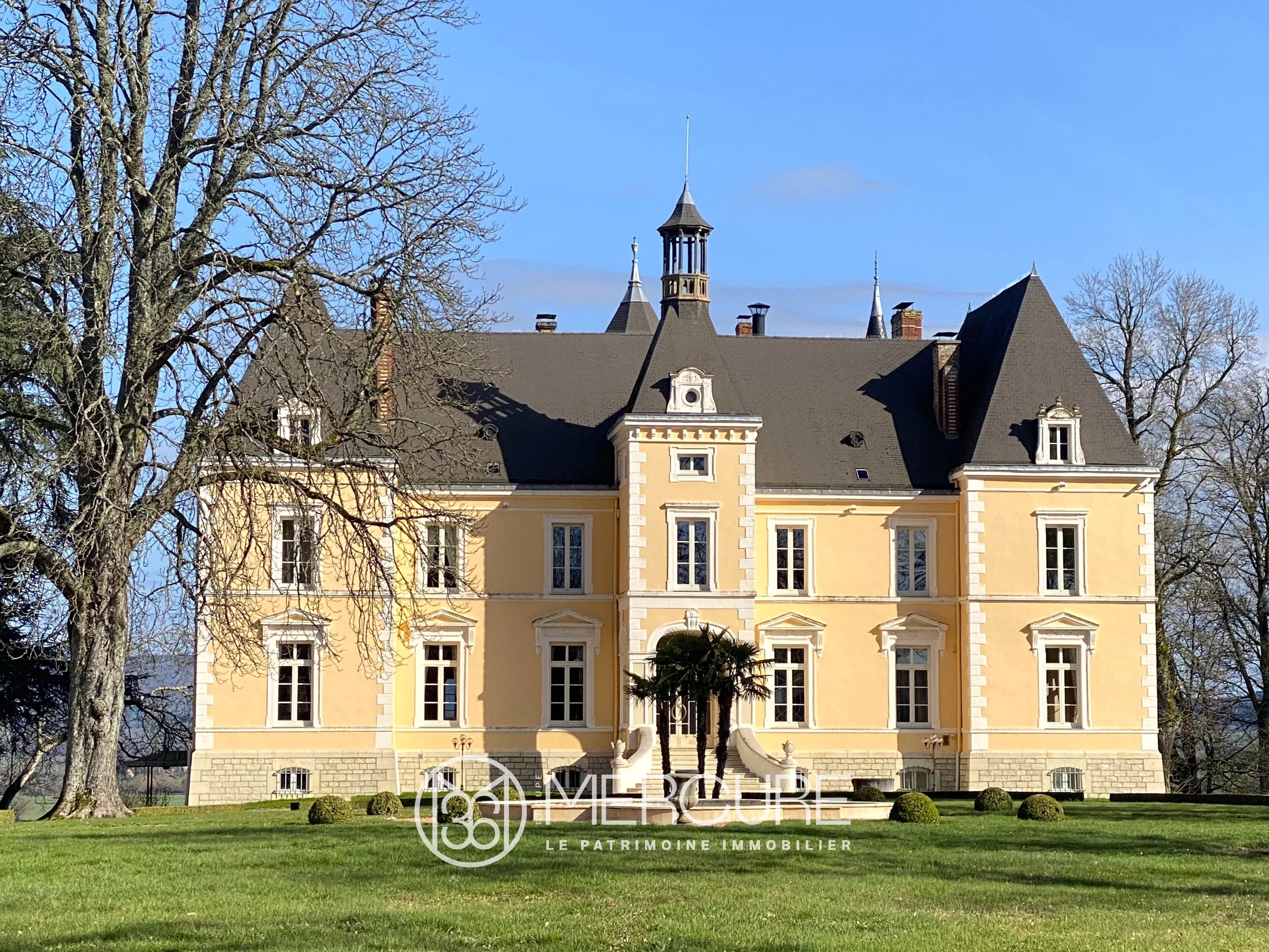 En Bourgogne du sud, dans un environnement protégé sans aucune nuisance, propriété d’exception sur environ 17,5 hectares clos en position dominante avec superbe vue sur la région. Magnifique château du XIXème siècle entièrement refait à neuf avec prestations haut de gamme, d’environ 1050 m² habitables et chauffés comprenant de vastes réceptions, 7 chambres et salles de bains, 2 cuisines équipées .