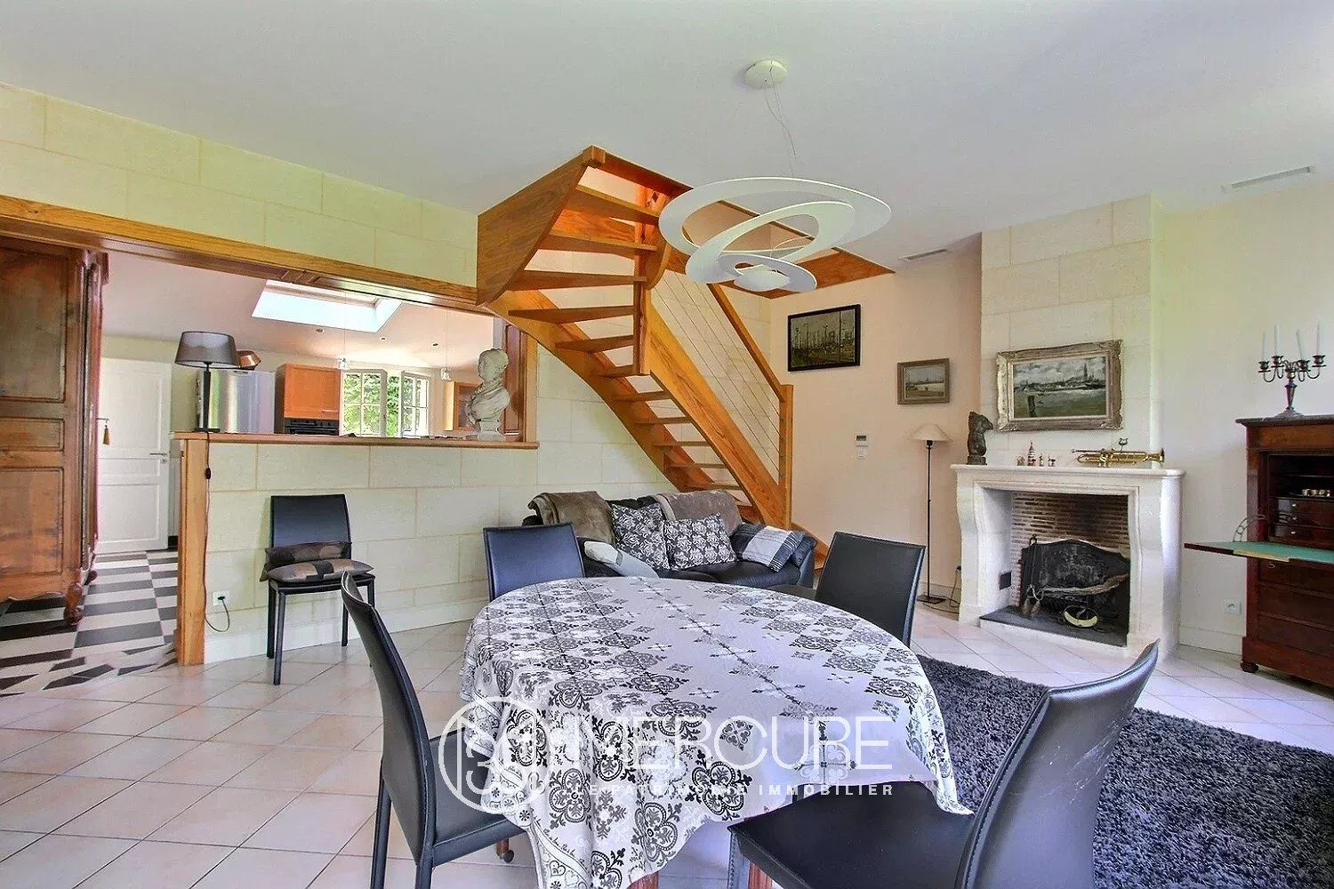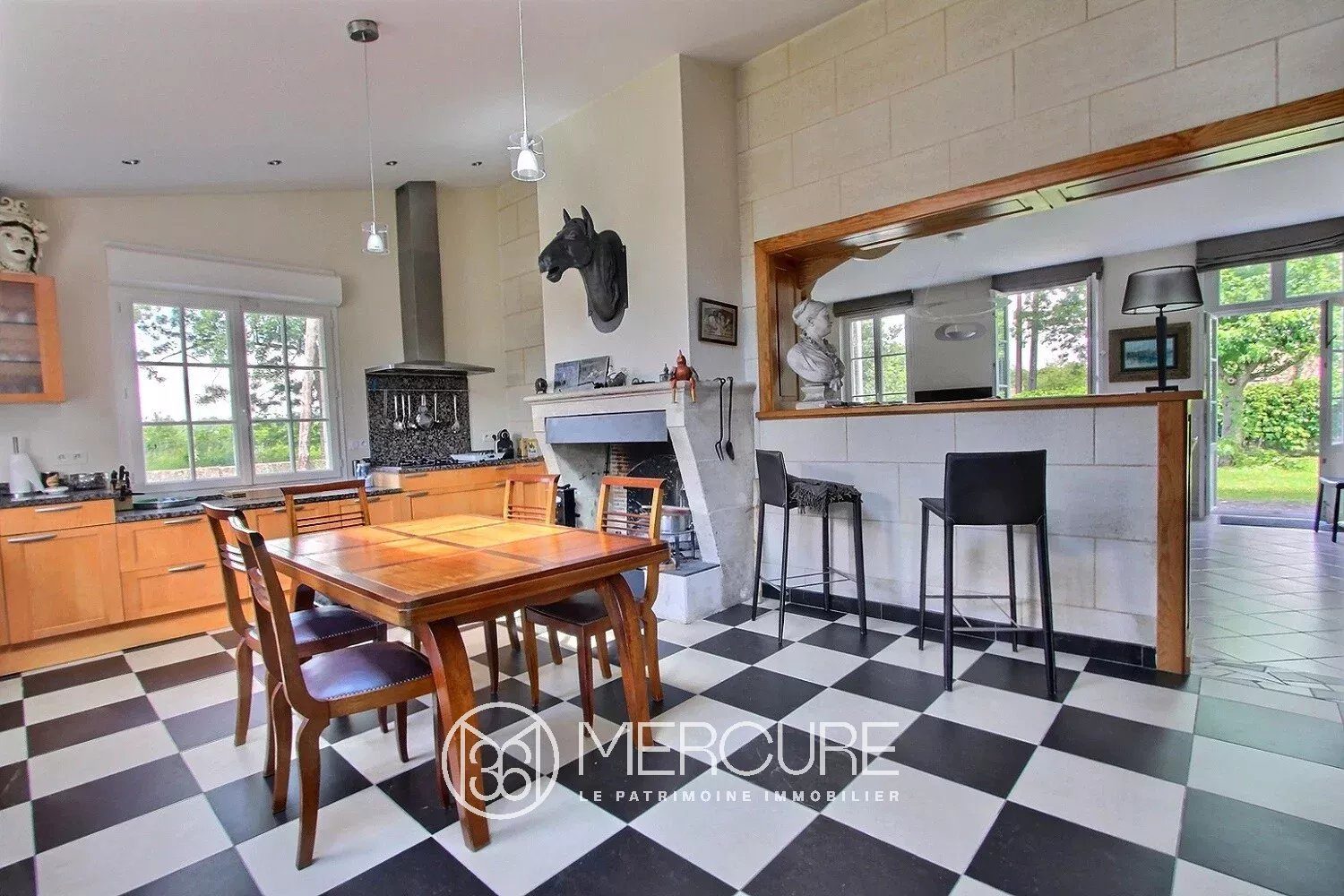 – Lumineuse cuisine familiale (26.6 m²) avec cheminée